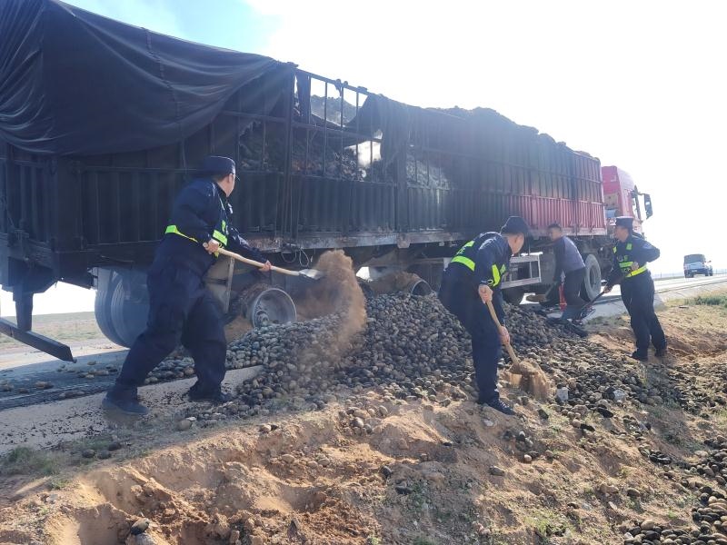 “叮鈴鈴、叮鈴鈴......”9月16日上午9時許,一聲清脆的警鈴讓阿拉善邊境管理支隊烏力吉邊境派出所的民警們的心為之一驚,有群眾報警稱在轄區(qū)S218省道上,一輛滿載土豆的重型半掛牽引車起火自燃了。