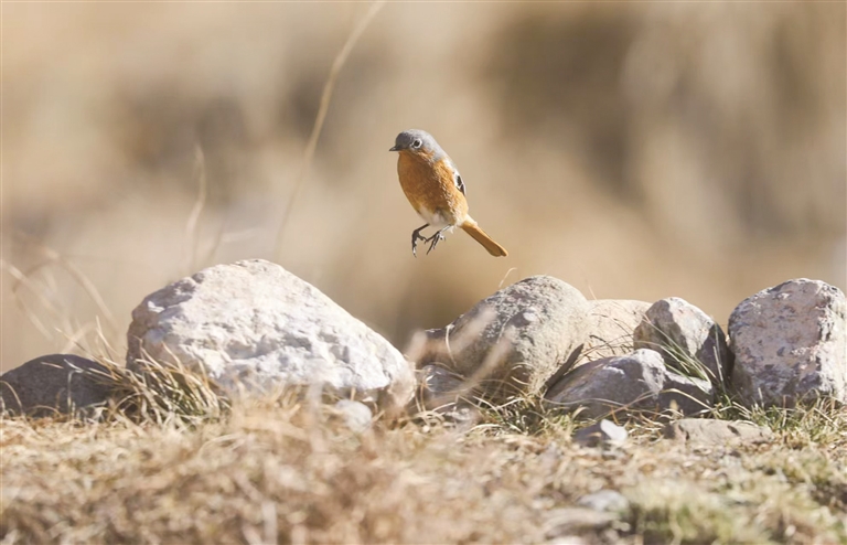 藍馬雞安居賀蘭山林間,尾羽輕曳,見證著生態(tài)修復(fù)的成果;普通鸕鶿與白鷺集群于濕地,與粼粼波光共舞,訴說水域生態(tài)的復(fù)蘇;黑鳶盤旋于原野,銳目如炬,俯沖擒獵鼠兔,維系草原生態(tài)平衡;黃頭鹡鸰與鳳頭百靈穿梭于曠野,啄食草籽昆蟲,成為大自然的“清道夫”與“調(diào)節(jié)者”……