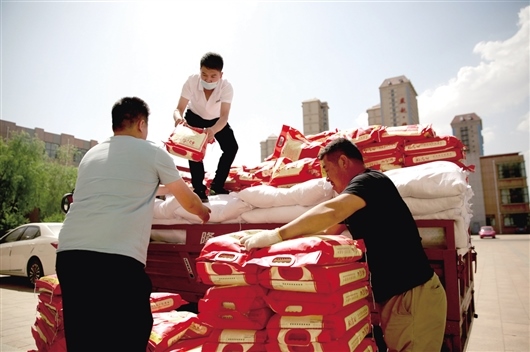 聽說這批物資是捐贈(zèng)給學(xué)校的,拉載物資的工人以及尚宇的朋友、家人紛紛前來幫助搬運(yùn),“我們帶著120袋優(yōu)質(zhì)大米、200袋面、100箱有機(jī)蔬菜,慰問高新一中辛勤的老師,這是尚宇以個(gè)人的名義捐贈(zèng)的。老師們無微不至地為學(xué)生付出,在這個(gè)特殊時(shí)期,希望通過慰問來表達(dá)對(duì)老師們的敬意?!北簧杏畹男袨楦袆?dòng),前來幫助搬運(yùn)物資的李聰亮介紹。