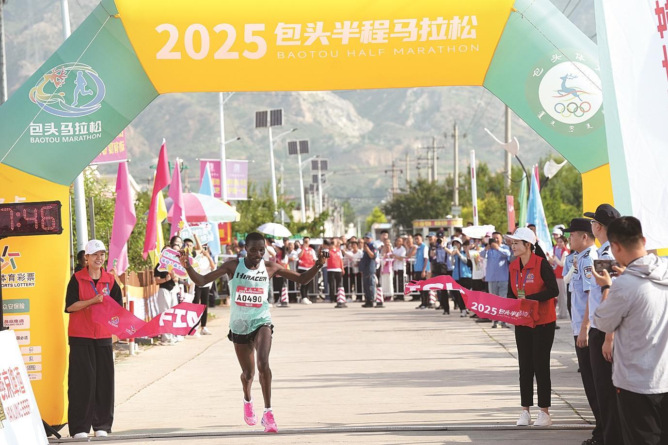 撞線后,男子組冠軍來自肯尼亞的選手Vincent kipchumba Toroitich表示:“這是我第一次來包頭,今天很開心能取得這個(gè)成績,感覺包頭非常好。”