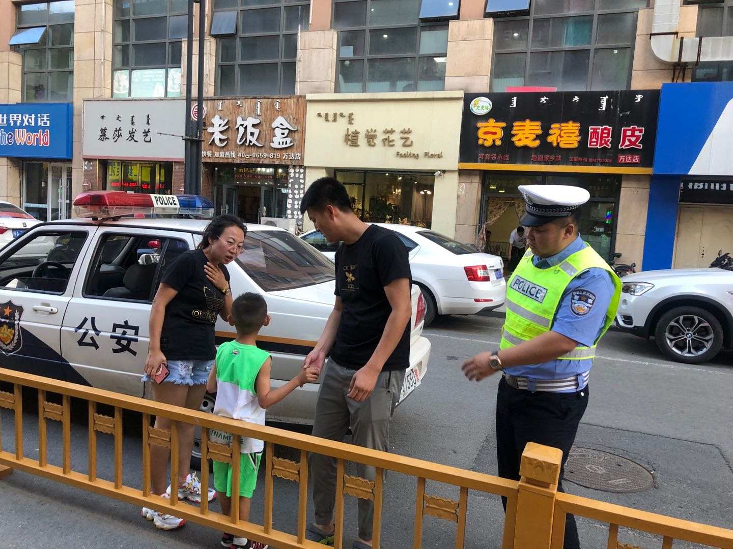 十分鐘后,孩子的媽媽爸爸到達現(xiàn)場一把抱起孩子,連聲感謝執(zhí)勤民警。據(jù)孩子的父母講,孩子在附近補課,下課后孩子自己跑了出來,老師也沒有注意。