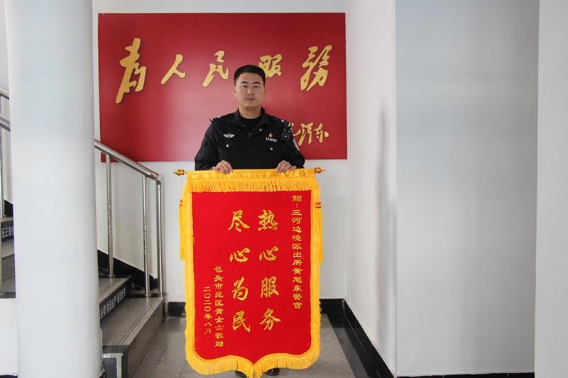 8月31日,三河邊境派出所值班室收到一個來自2000公里之外的包裹,打開包裹一看,里面裝著一面繡著“熱心服務,盡心為民”的錦旗。錦旗的背后,是一個暖心的故事。7月31日,包頭市游客黃先生到派出所報警稱在白樺林景區(qū)游玩時將手提包丟失,包內裝有現(xiàn)金和一行三人的身份證件,情緒非常激動,民警一邊安撫游客情緒,一邊組織警力進行尋找,不到20分鐘就將游客手提包找到并歸還,游客緊緊握著民警的手,轉悲為喜。