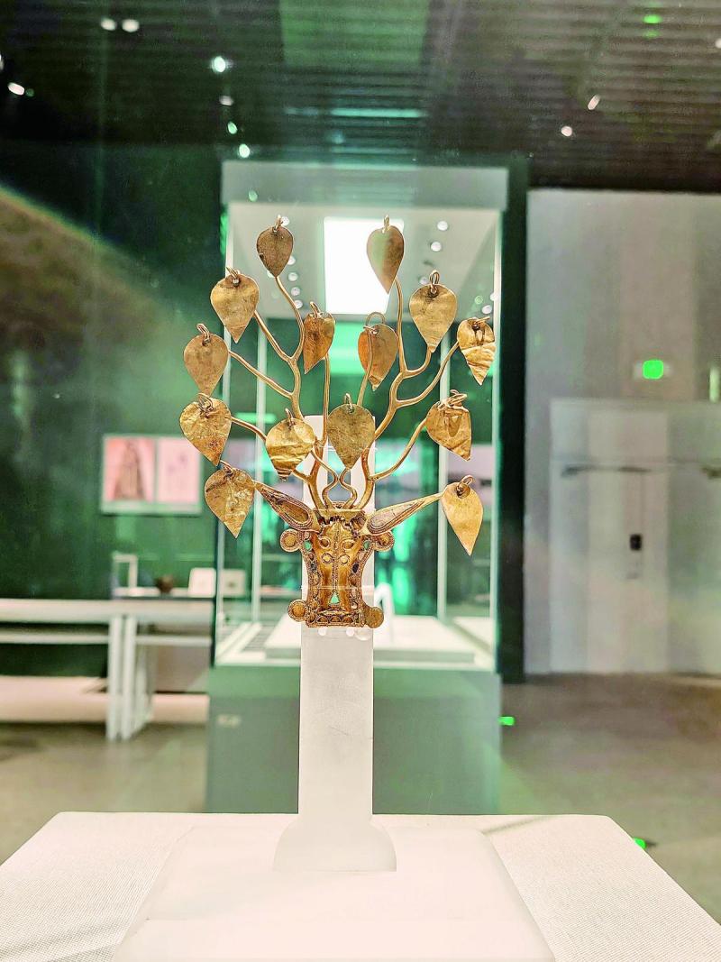 展覽中,呼倫貝爾的嘎仙洞遺址出土的石鏃、骨錐等,見證了拓跋鮮卑早期的生活遺跡;內(nèi)蒙古博物院藏的鹿角金步搖冠精美華麗,鹿頭面部鑲嵌有珠飾,鹿角支叉上所掛的桃形金葉均可搖動,象征著草原民族對于鹿的崇拜;釉陶馬、青釉武士俑,展示了拓跋鮮卑強(qiáng)大的騎兵力量;從大同出土的彩繪陶女舞俑到洛陽出土的彩繪陶伎樂俑,體現(xiàn)了北魏在漢化改革前后的服飾變化、音樂舞蹈和社會生活。