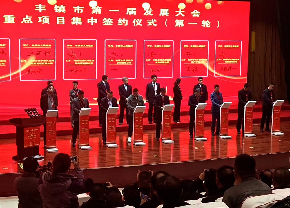 豐鎮(zhèn)市第一屆發(fā)展大會重點項目集中簽約儀式。新華網(wǎng) 發(fā)