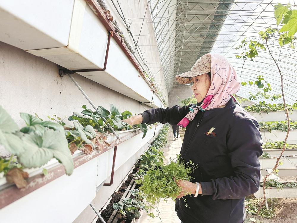 走進(jìn)草莓大棚內(nèi),濃濃的暖意撲面而來。抬眼望去,離地一米多的種植架上種滿了生機(jī)勃勃、長(zhǎng)勢(shì)喜人的草莓;穿梭在種植架間,一顆顆鮮紅欲滴、圓潤(rùn)飽滿的草莓宛如璀璨的紅寶石,從綠葉間“探出頭”來,高高地懸掛在空中,散發(fā)著誘人的清香。種植戶牛尚海正在察看采用立體栽培技術(shù)的草莓長(zhǎng)勢(shì)情況。“這是一種三維立體種植方式,能夠充分利用空間和光照,大幅度提高生產(chǎn)效率。以前一畝地最多種8000株,現(xiàn)在能種2.4萬株,產(chǎn)量提高了3倍,而且草莓個(gè)頭更均勻,賣相更好。”牛尚海告訴記者,這種種植方式不僅省工、省力,還降低了勞動(dòng)強(qiáng)度,摘草莓也不用彎腰了。此外,這種種植模式比傳統(tǒng)種植模式每畝節(jié)水50%。
