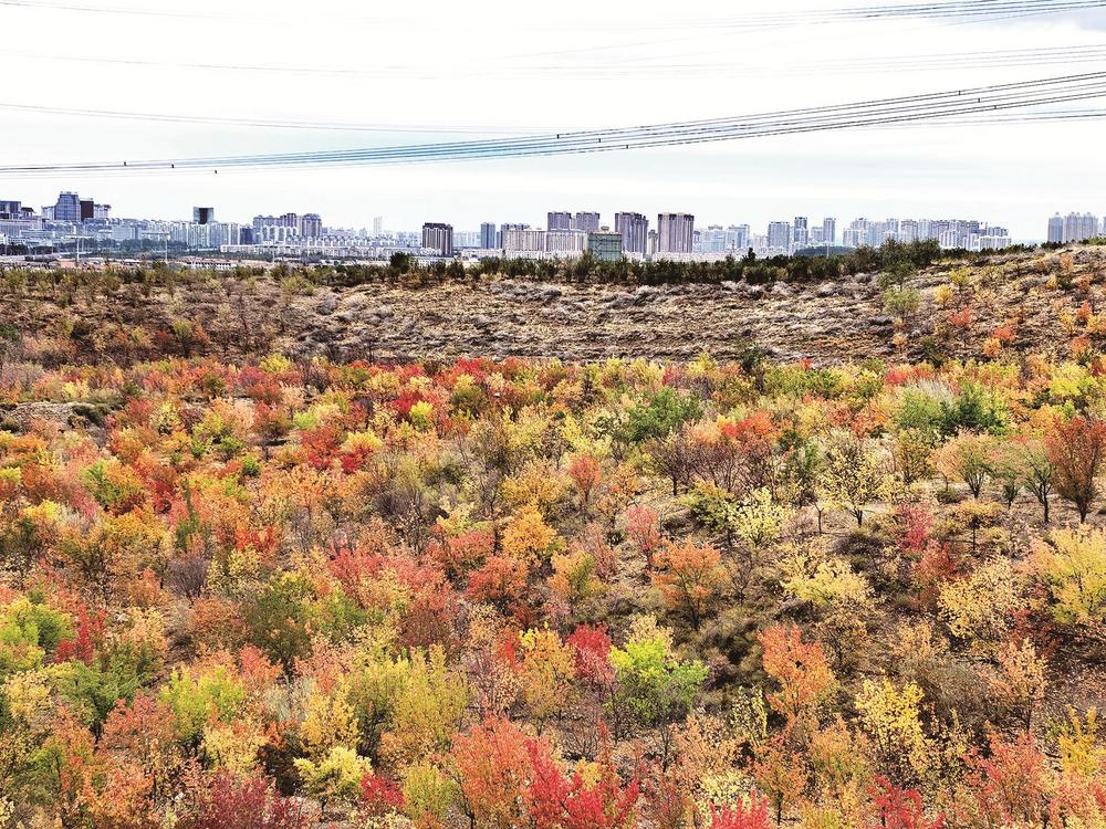 如果說黃河岸邊的秋景是溫柔的,那么甘德爾山的秋景則多了幾分豪邁與壯闊。沿著登山步道向上攀登,山路兩旁的灌木叢已經(jīng)變成了紅色、黃色、橙色,五彩斑斕,層層疊疊,像大自然打翻了調(diào)色盤。站在山頂俯瞰,整個(gè)烏海市區(qū)盡收眼底,黃河像一條金色的絲帶纏繞在城市邊緣。秋風(fēng)在耳邊呼嘯,帶著山間的清涼,讓人瞬間忘卻了城市的喧囂與煩惱。