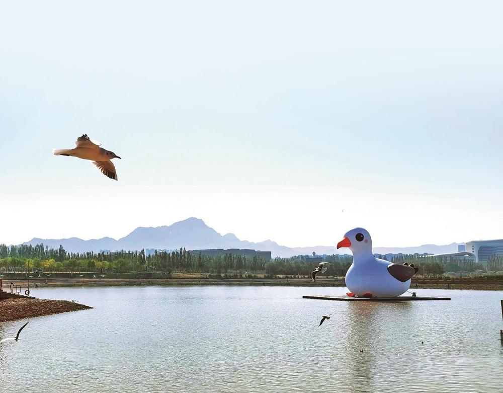 站在烏海湖畔旁,看著一片陽(yáng)光灑在波光粼粼的水面上,泛著細(xì)碎的金光。在這充滿詩(shī)意的秋色里,主角“紅嘴鷗”天團(tuán)準(zhǔn)時(shí)赴約。它們穿著“白衣紅鞋”,時(shí)而在波光粼粼的湖面上輕盈滑翔,時(shí)而一個(gè)猛子扎下去,精準(zhǔn)捕獲水中的美味。