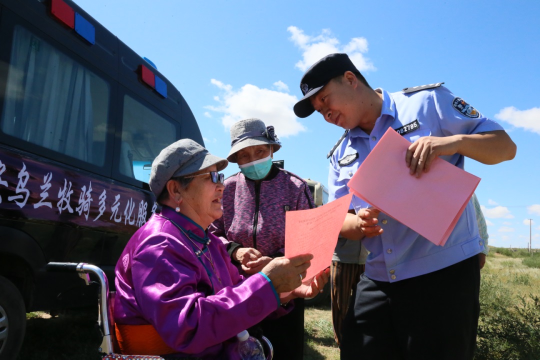 結(jié)合牧區(qū)特色和牧民群眾興趣愛好,旗公安局探索創(chuàng)新宣傳工作方法,將轄區(qū)“紅袖標(biāo)”“警務(wù)助理”加入宣傳隊伍中,通過正鑲白旗公安烏蘭牧騎多元化服務(wù)隊,以群眾喜聞樂見形式,對電信詐騙行騙方式手段及防范方法措施進(jìn)行宣傳,受到牧民群眾一致好評,被微信群及朋友圈廣泛轉(zhuǎn)載,有效提高了反電信詐騙宣傳效率,切實提升了群眾對防范電信詐騙工作的知曉率和支持率,推動構(gòu)建“全民反詐”格局。