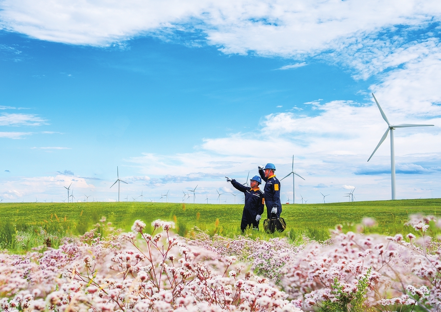 近日,國華投資蒙東分公司輝騰梁風(fēng)電場內(nèi),風(fēng)機群與遍野花海相映成趣,兩名風(fēng)電運維工程師,正在交流剛處理完的偏航故障細(xì)節(jié),核對風(fēng)速儀、風(fēng)向標(biāo)校準(zhǔn)數(shù)據(jù),討論后續(xù)防沙維護(hù)措施,同時檢查設(shè)備運行狀態(tài),確保風(fēng)機穩(wěn)定發(fā)電。