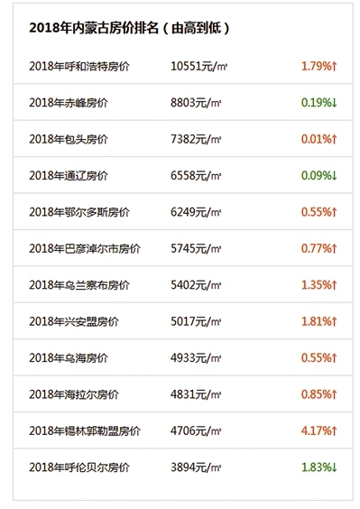那么,我區(qū)12盟市的房?jī)r(jià)2018年走勢(shì)如何?新樓盤的均價(jià)都在什么價(jià)位區(qū)間?記者從安居客官網(wǎng)的統(tǒng)計(jì)中為大家梳理如下: