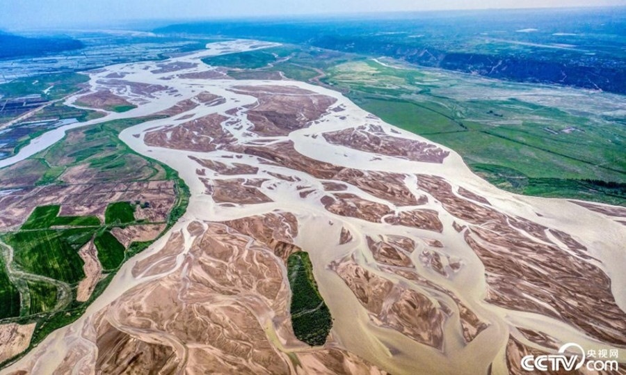 隨著黃河水位下降,山西運(yùn)城萬(wàn)榮縣境內(nèi)的黃河河床大面積裸露,河水在主河道上分散成了無(wú)數(shù)條大小不等的細(xì)流,形成了黃河特有的景色。