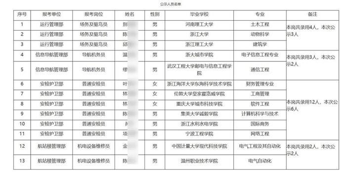 ·溫州機(jī)場(chǎng)集團(tuán)回應(yīng)浙大畢業(yè)生應(yīng)聘驅(qū)鳥員:社會(huì)招聘,擇優(yōu)錄取。