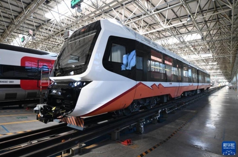 我國(guó)首列出口新能源輕軌車輛在河北唐山下線。