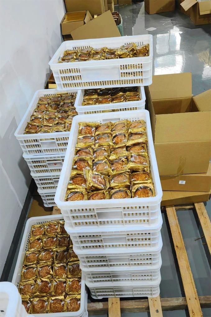 為掩人耳目,王某等人將制作好的散裝月餅運(yùn)往一外地窩點(diǎn)進(jìn)行入盒包裝,然后再將包裝好的月餅送往另一外地窩點(diǎn),由專人負(fù)責(zé)在盒子外包裝貼假冒的防偽標(biāo)簽,以假亂真,最后在網(wǎng)絡(luò)平臺(tái)上以正品2折的低價(jià)進(jìn)行售賣。截至被抓獲當(dāng)日,該團(tuán)伙已在網(wǎng)上售賣了1萬余盒假冒品牌月餅,但大部分貨品還未來得及發(fā)貨。