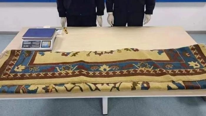深圳郵局海關(guān)關(guān)員在對(duì)過(guò)境貨物開展監(jiān)管時(shí)發(fā)現(xiàn),1票包裹機(jī)檢圖像可疑,隨即對(duì)其開箱查驗(yàn)。查驗(yàn)發(fā)現(xiàn),該票包裹內(nèi)有一塊做工精致的地毯,編織到地毯內(nèi)的透明細(xì)塑料管中藏匿有細(xì)粉末一批,毛重11555.8克。經(jīng)現(xiàn)場(chǎng)試劑檢測(cè),判斷為冰毒。目前,海關(guān)緝私部門已介入調(diào)查處理。