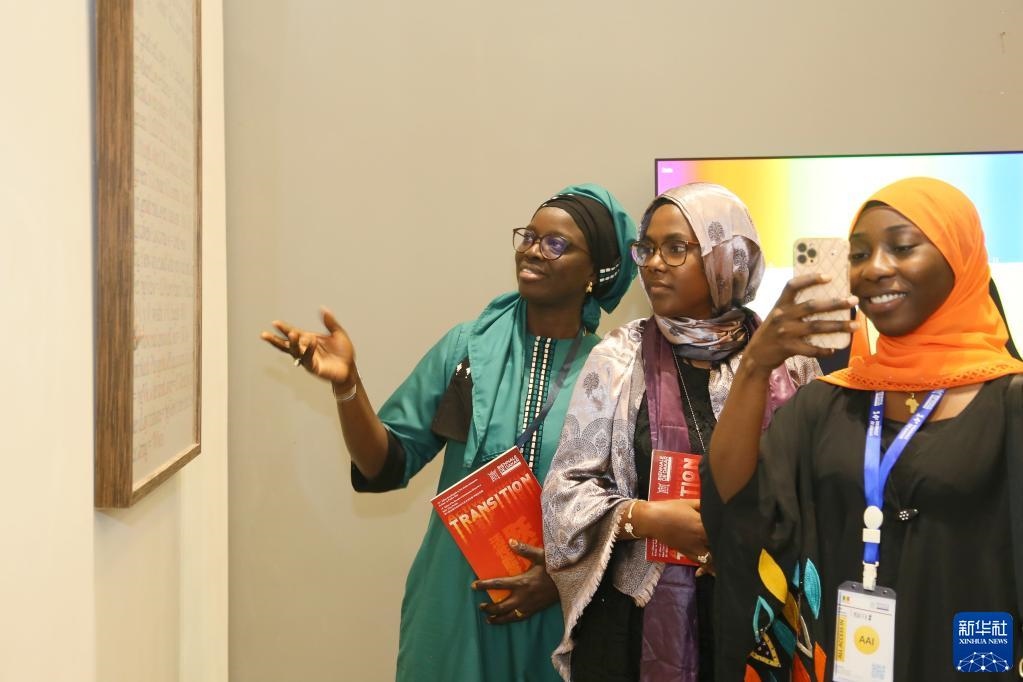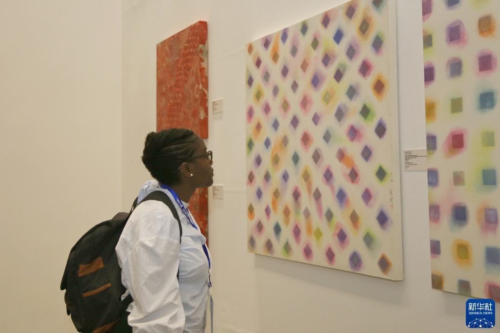 5月19日,觀眾在塞內(nèi)加爾達(dá)喀爾非洲當(dāng)代藝術(shù)雙年展的中國(guó)館參觀。新華社記者王子正攝