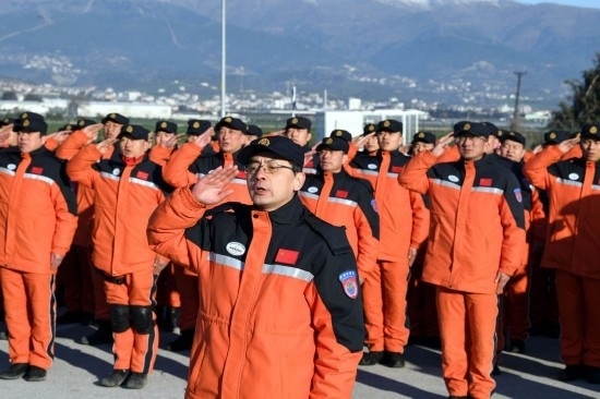 2月14日,中國救援隊與中國香港特區(qū)救援隊聯(lián)合編組在土耳其哈塔伊省安塔基亞市開展救援工作。