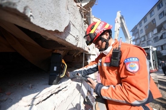 中國救援隊自8日到達當(dāng)?shù)貫?zāi)區(qū)后,按照土方給出的范圍,到地震重災(zāi)區(qū)哈塔伊省執(zhí)行搜救任務(wù)。在搜索中,救援隊努力搜索生命跡象,不放棄一絲希望。