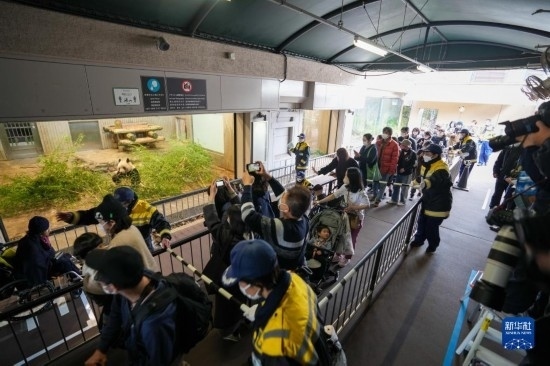 2月19日,在日本東京上野動物園,游客排隊與大熊貓“香香”告別。新華社記者 張笑宇 攝
