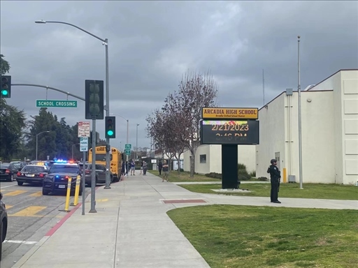 新華社洛杉磯2月24日電(記者高山)當?shù)貢r間2月21日下午3點多,美國加利福尼亞州洛杉磯縣阿卡迪亞高中即將放學(xué),突然間大批警車呼嘯而至,封鎖了各個入口,荷槍實彈的警察在直升機掩護下沖入校園。教室內(nèi),師生們緊張地躲到桌下。校園外,家長們焦急地等待消息。