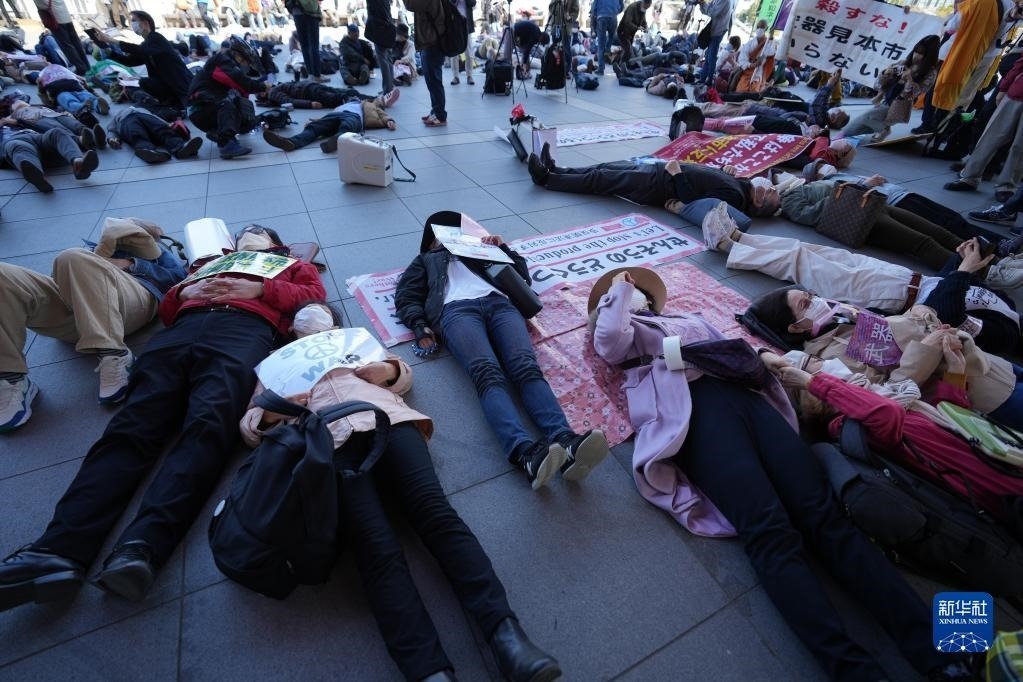當日,300多名民眾聚集在會展中心門前,高喊“拒絕為戰(zhàn)爭準備”“拒絕死亡商人”“反對戰(zhàn)爭”等口號強烈抗議日本強化武器交易??棺h演講之后,民眾還集體倒地,以行為語言以示抗議。