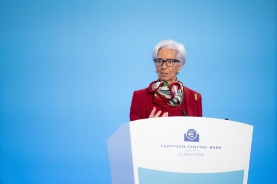 3月16日,歐洲中央銀行行長(zhǎng)拉加德在德國(guó)法蘭克福歐洲央行總部出席新聞發(fā)布會(huì)。新華社發(fā)