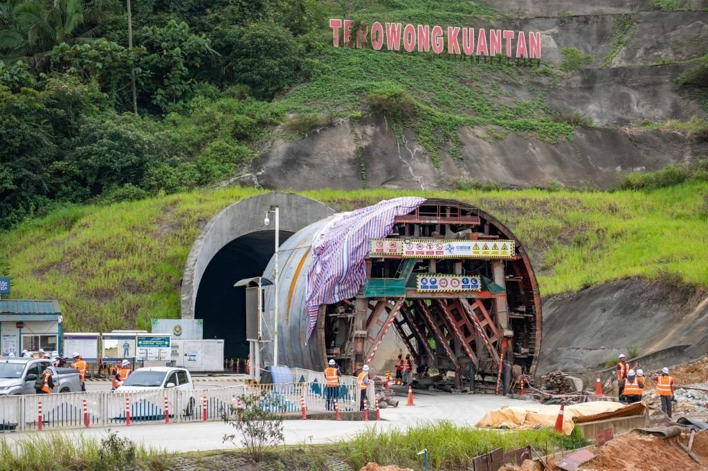 這是3月6日在馬來西亞彭亨州拍攝的馬來西亞東海岸鐵路(馬東鐵)關(guān)丹隧道施工現(xiàn)場。