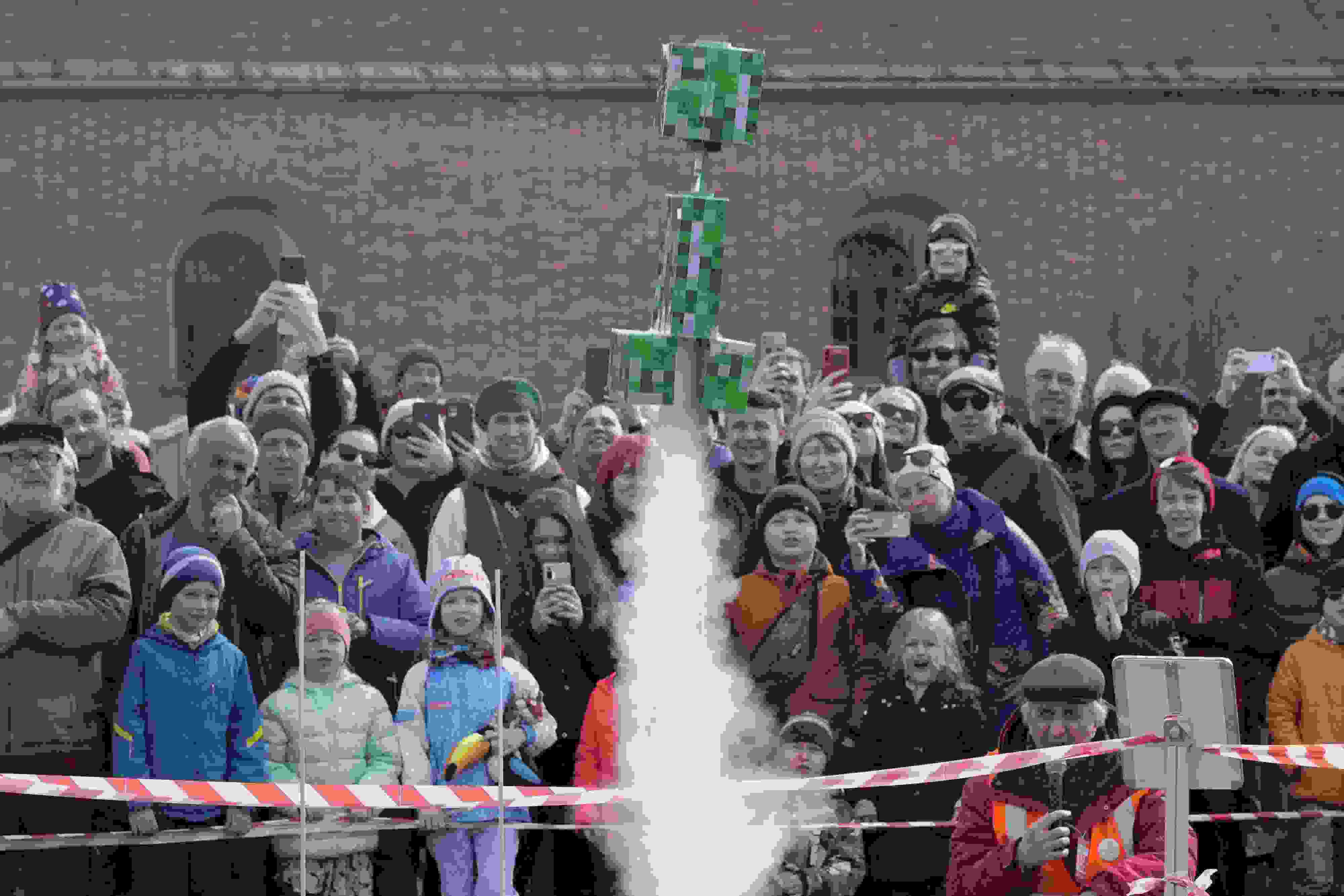 當(dāng)?shù)貢r(shí)間2023年4月16日,俄羅斯圣彼得堡,民眾發(fā)射火箭模型紀(jì)念人類首次太空飛行62周年。 視覺中國(guó)