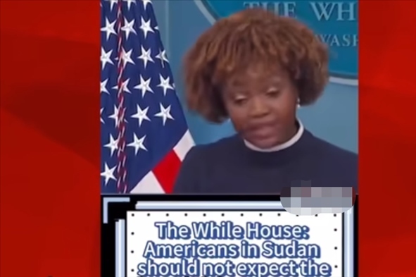 為證明自己的觀點,安柏然在視頻中展示了幾個視頻片段。其中一個片段顯示,一名美媒主持人報道稱,美軍在夜間出動直升機將大約100名美國外交官及其家屬從蘇丹撤出。還有一段視頻顯示,白宮新聞秘書卡里娜·讓-皮埃爾近日在記者會上稱,美國駐蘇丹使館4月16日曾發(fā)布安全警告稱,由于喀土穆安全局勢存在不確定性且機場已關(guān)閉,美國公民此時不應期待美國政府協(xié)調(diào)撤僑?!爱攧罩笔?,在蘇丹的美國公民要自行安排,在困難情況下確保自身安全。我們建議美國公民就地避難……”她稱。