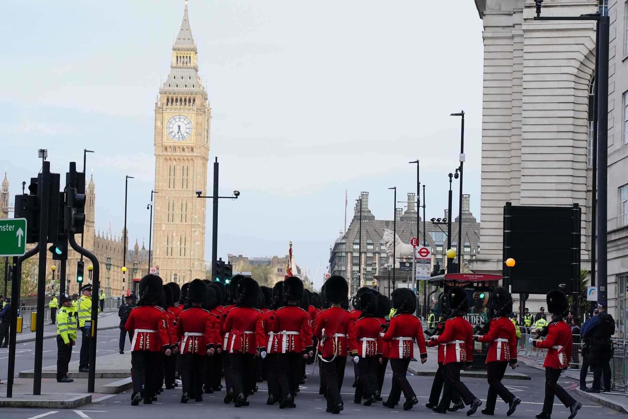 英國(guó)皇家武裝部隊(duì)成員抵達(dá)倫敦參加加冕典禮