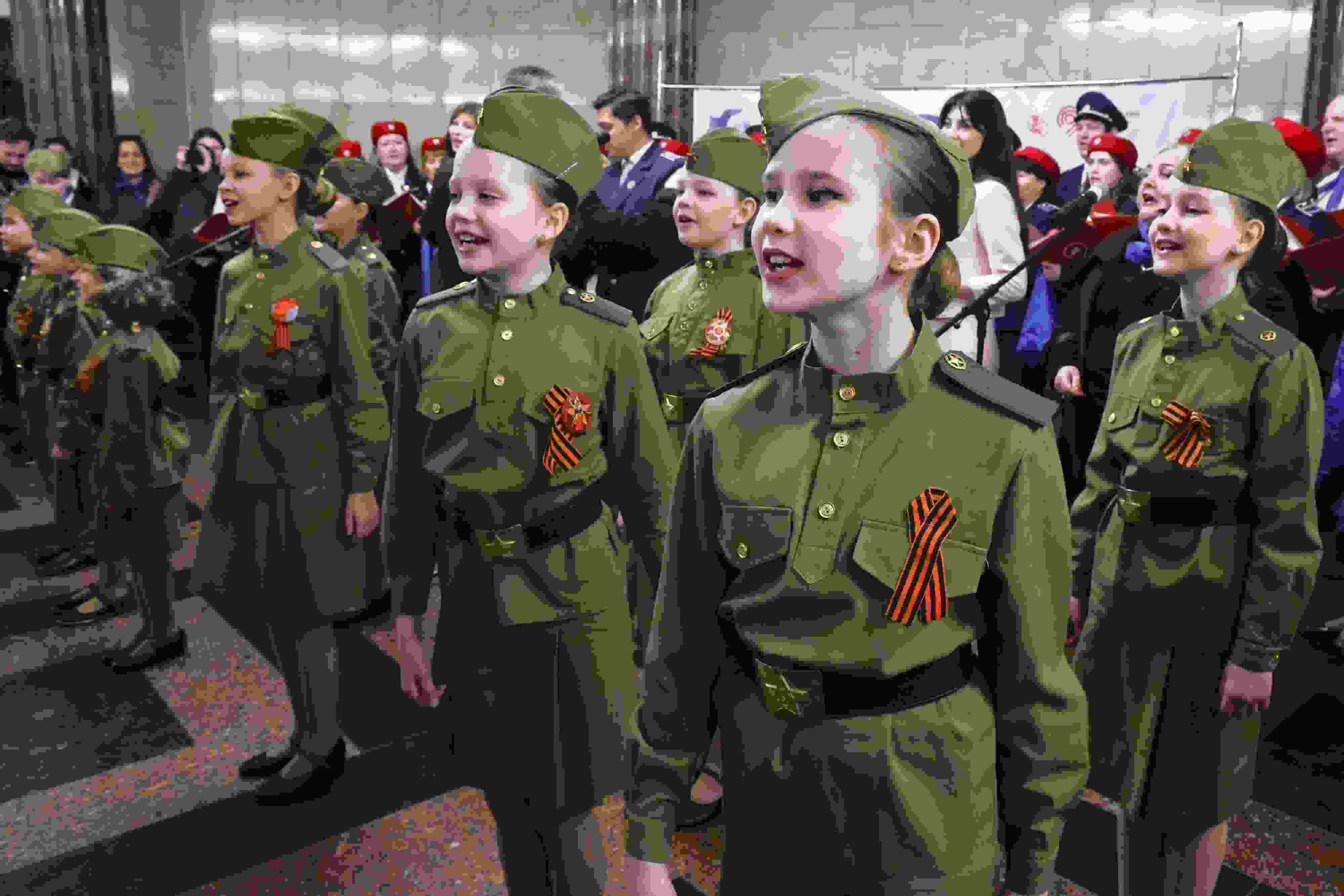 當(dāng)?shù)貢r間2023年5月8日,俄羅斯莫斯科,兒童在紀(jì)念二戰(zhàn)勝利78周年的音樂會上表演。 視覺中國