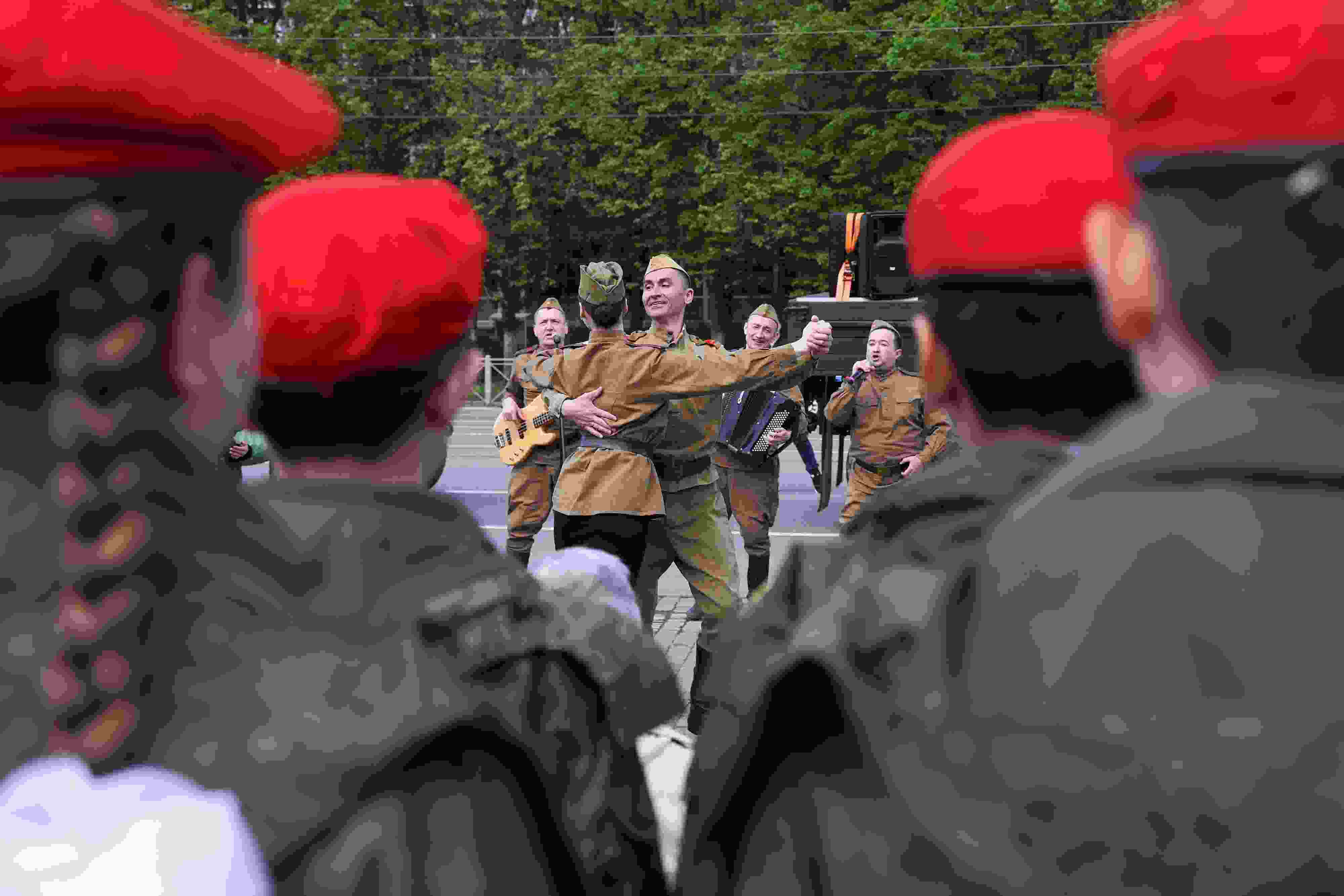 當(dāng)?shù)貢r間2023年5月8日,俄羅斯莫斯科,人們在紀(jì)念二戰(zhàn)勝利78周年的音樂會上表演。蘇聯(lián)解體后,俄羅斯自1995年起,在每年的5月9日舉行衛(wèi)國戰(zhàn)爭勝利日閱兵式及系列慶祝活動。 視覺中國