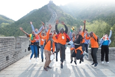 4月17日,非洲青年代表在北京居庸關(guān)長城合影留念。中國宋慶齡基金會供圖