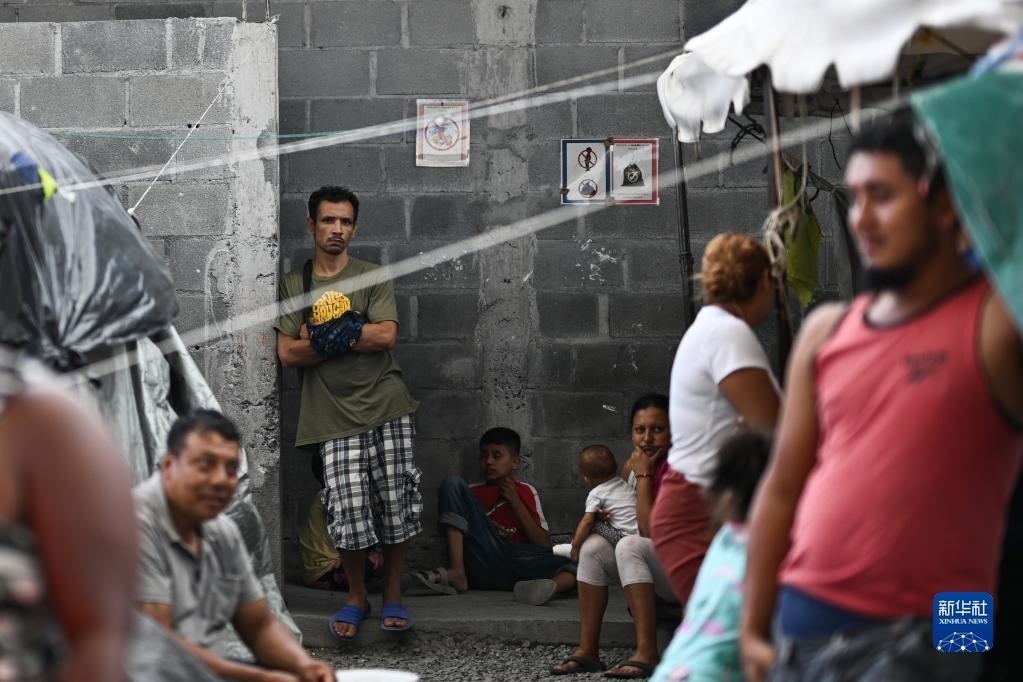 5月16日,移民在美墨邊境城市墨西哥雷諾薩的一處收容所外等待進(jìn)入。
