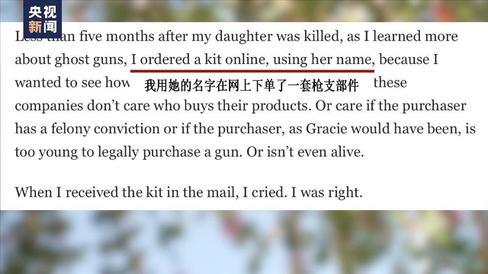 “幽靈槍”校園槍擊案幸存者 米婭·特雷塔:(“幽靈槍”)的設(shè)計(jì)就是利用法律的漏洞,逾越原本為了保證我們安全的法規(guī)。我站在這里就是為了告訴你們,法律的漏洞像大峽谷一樣寬,現(xiàn)有的槍支法規(guī)遠(yuǎn)遠(yuǎn)不夠。
