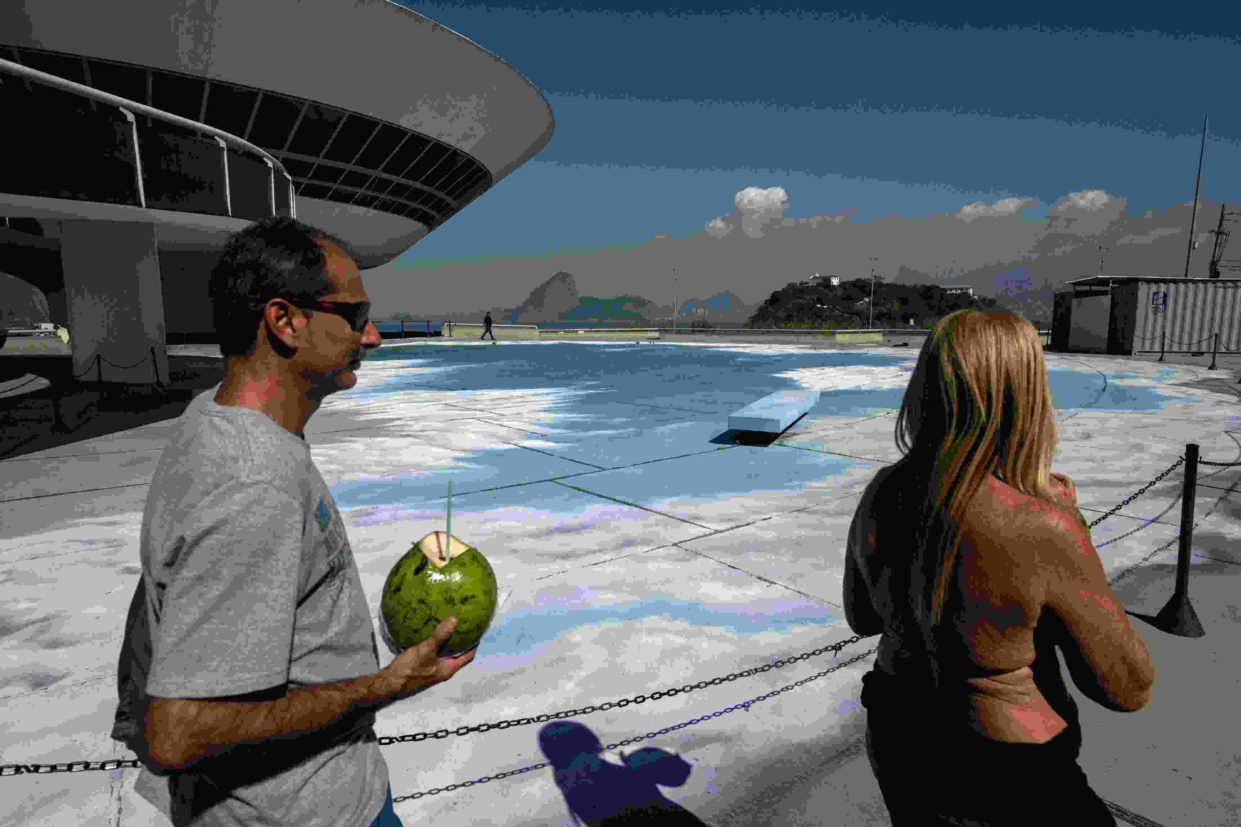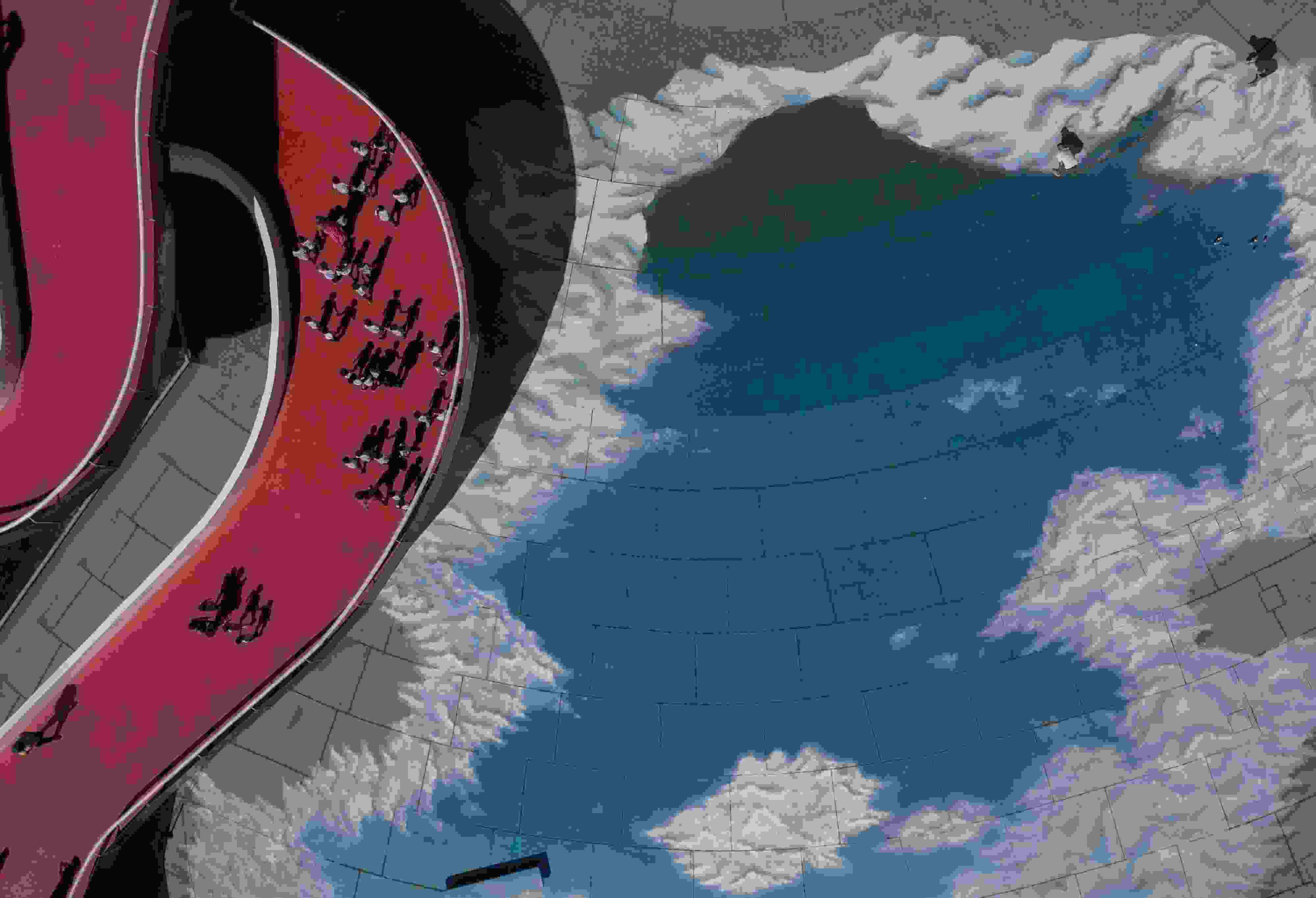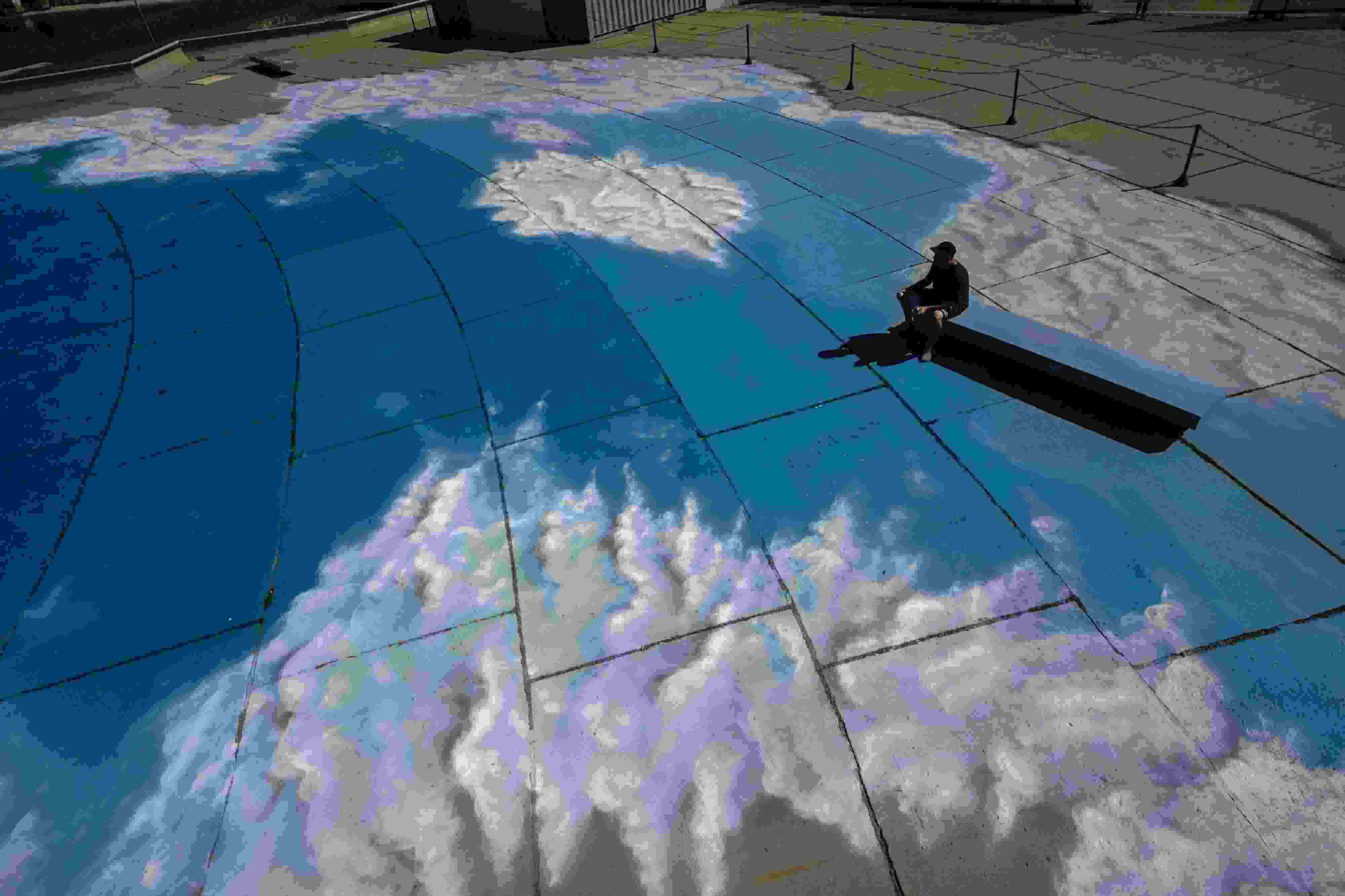 當(dāng)?shù)貢r(shí)間2023年6月6日,巴西里約熱內(nèi)盧,藝術(shù)家在地面上繪制“藍(lán)天白云”。 視覺中國(guó)