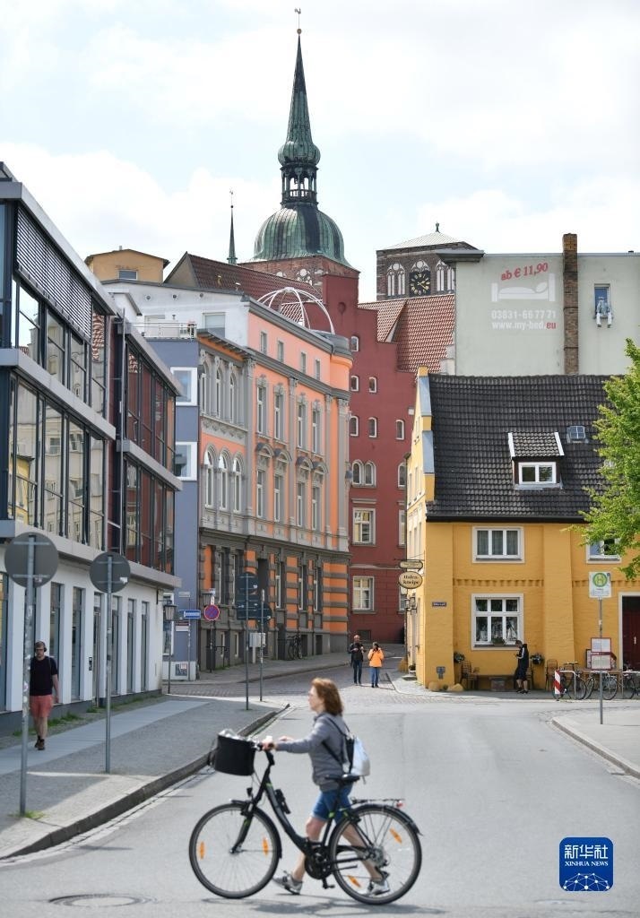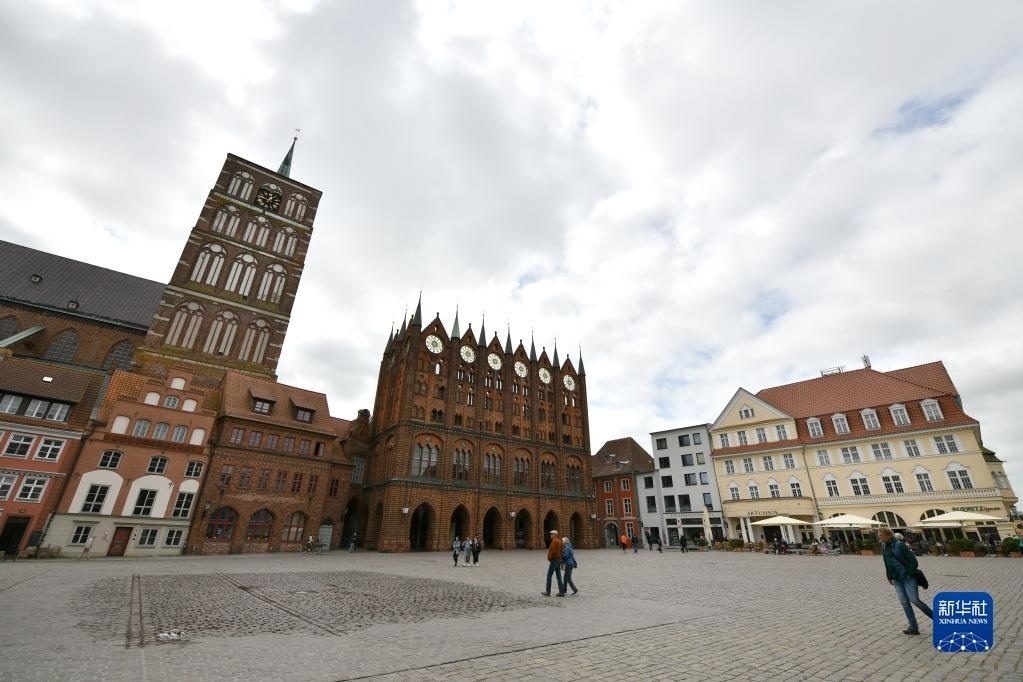 這是6月1日拍攝的德國(guó)施特拉爾松德城中心景色。