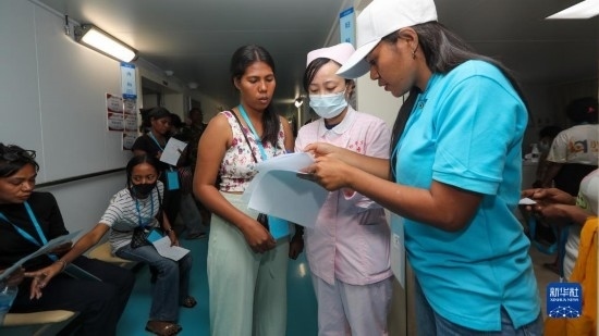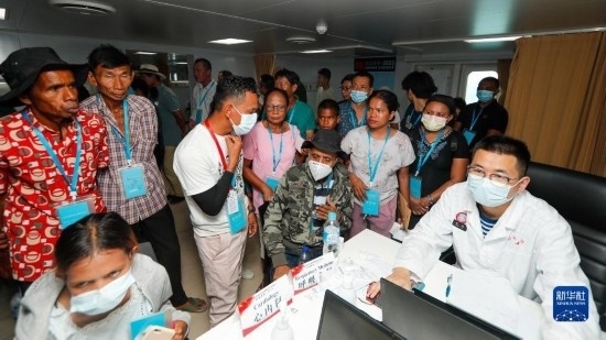 中國海軍“和平方舟”號(hào)醫(yī)院船訪問東帝汶并開展醫(yī)療服務(wù)期間,醫(yī)院船醫(yī)護(hù)人員為當(dāng)?shù)孛癖娞峁┽t(yī)療服務(wù)(9月8日攝)。新華社發(fā)(黎宇 攝)