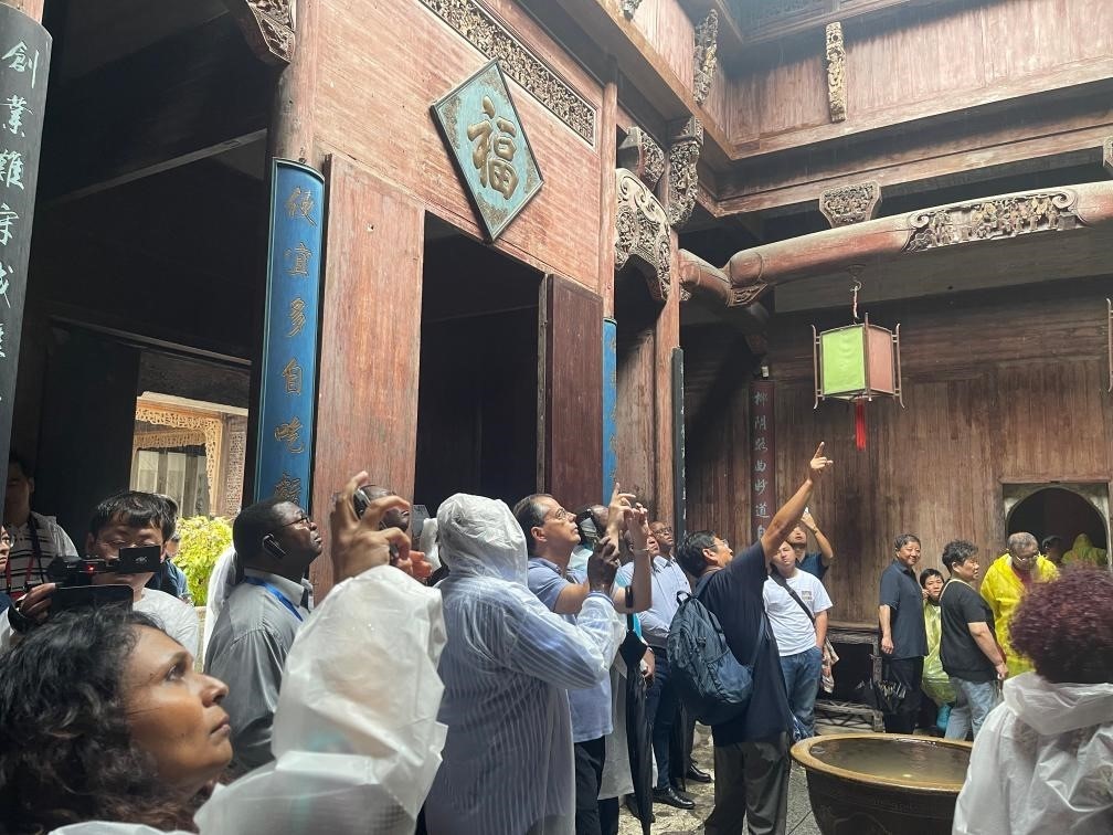 圖為駐華使節(jié)參觀世界文化遺產地宏村。新華社記者董雪 攝