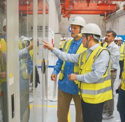 巴基斯坦卡洛特水電站是中巴經(jīng)濟走廊首個水電投資項目,由中國三峽集團投資開發(fā)建設,運營一年來節(jié)約標準煤約140萬噸,減少二氧化碳排放約350萬噸。圖為中方技術(shù)人員向來訪的巴基斯坦代表團介紹水電站運行情況。本報巴基斯坦分社 薩義德·邁赫迪攝