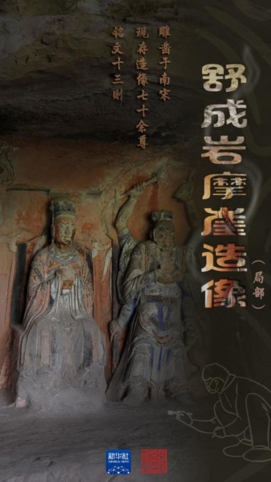 隨著古絲綢之路的聲聲駝鈴,佛教石窟藝術(shù)一路東傳,川渝地區(qū)的石刻群應時而生。自初唐至明清,大足石刻開鑿史綿延數(shù)百載,5萬余尊造像、10萬余字銘文相繼破石而出,造就獨具中國風格、中國氣派的石窟藝術(shù)的殿堂。