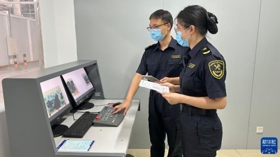 8月2日,中國鄭州機場海關關員用X光機對進口貨物開展非侵入式查驗。新華社發(fā)(鄭州機場海關供圖)