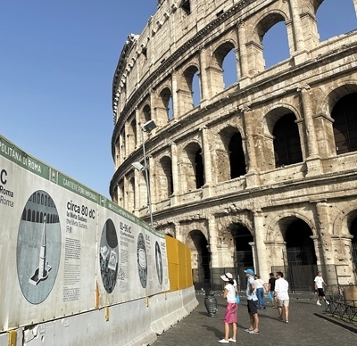 在意大利羅馬熱門(mén)景點(diǎn)斗獸場(chǎng),游客正在閱讀帶有中文解說(shuō)的標(biāo)識(shí)牌。本報(bào)記者 謝亞宏攝