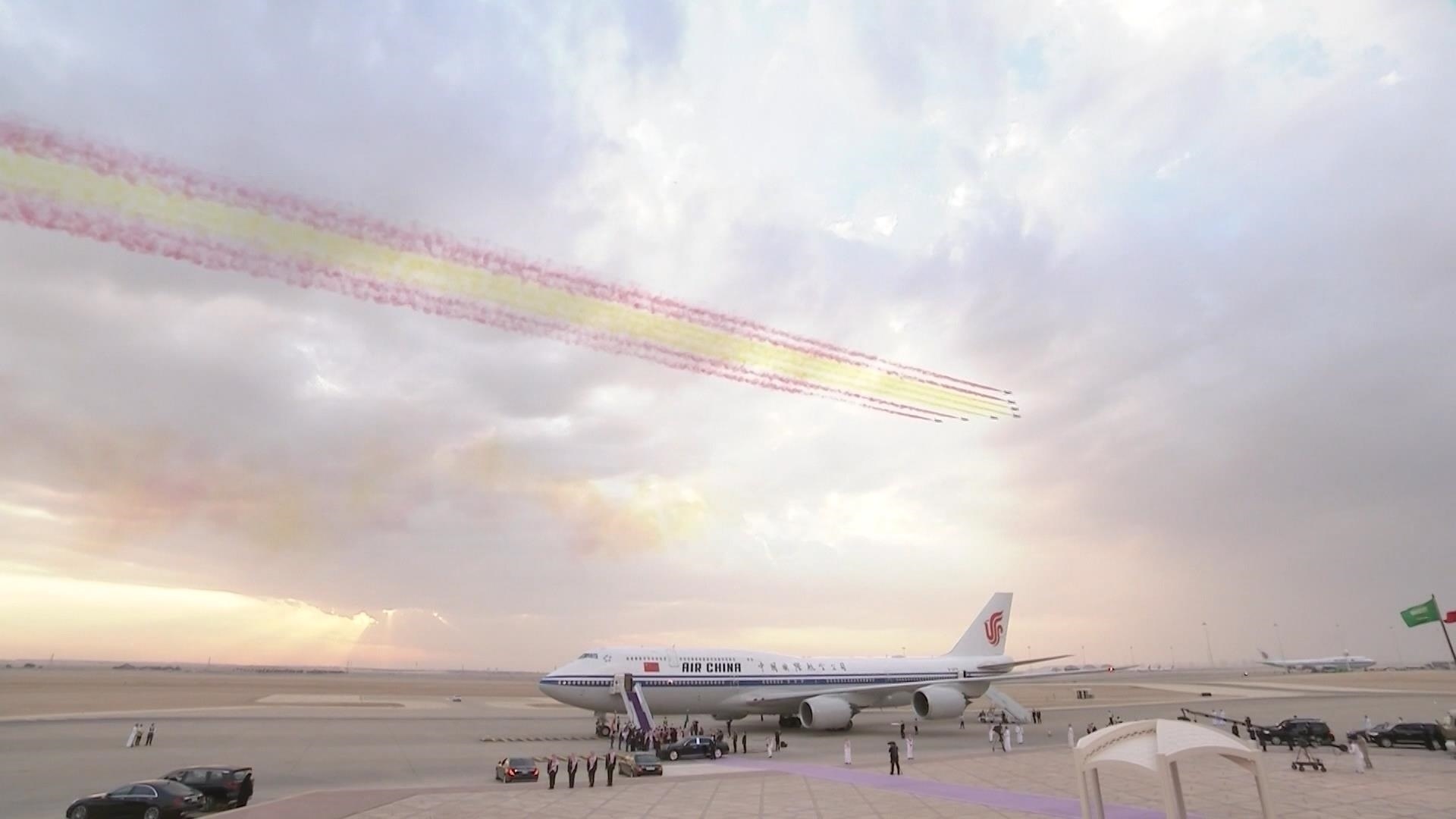過去7年,在兩國元首共同推動下,中沙務(wù)實合作迅猛發(fā)展。2022年12月,時隔6年,習(xí)近平主席對沙特再次進行國事訪問。當(dāng)習(xí)近平主席乘坐的專機進入沙特領(lǐng)空,沙特空軍4架戰(zhàn)機升空護航,禮賓護衛(wèi)機在空中拉出象征中國國旗的彩帶,沙特用最高禮遇迎接來自中國最尊貴的客人。