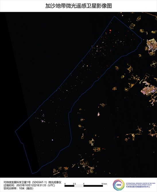 公開資料顯示,加沙地帶是一塊長41公里,寬6到12公里的狹長地帶,在總計約365平方公里的土地上,生活著200多萬人口,絕大部分為巴勒斯坦人。這里是全世界人口最稠密的地區(qū)之一,人口密度和西班牙馬德里和英國倫敦相當。利用SDG中心可持續(xù)發(fā)展科學衛(wèi)星1號的微光成像儀,在當?shù)貢r間9月14日晚10時左右拍攝的加沙地帶夜景圖像顯示,在此輪巴以沖突之前,整個加沙地帶的夜晚燈火通明,這也直觀反映了該地區(qū)的人口稠密程度。