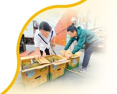 “針對水果等生鮮農(nóng)產(chǎn)品特點,我們采取7×24小時預(yù)約通關(guān),設(shè)置農(nóng)食產(chǎn)品專用窗口,優(yōu)先辦理鮮活易腐農(nóng)產(chǎn)品接單、放行業(yè)務(wù),并采取即到即檢即放模式,確保進(jìn)口水果通關(guān)零延遲?!臂屡D海關(guān)關(guān)長韓斌說。
