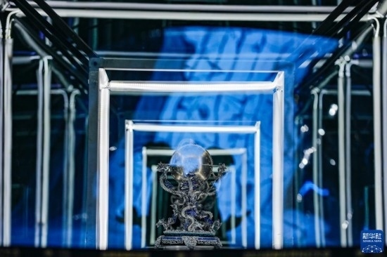 10月18日,在第81屆世界科幻大會(huì)主場(chǎng)館——成都科幻館內(nèi),兩名觀眾從藝術(shù)裝置作品《共生紀(jì)元》前走過(guò)。