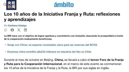 阿根廷著名經(jīng)濟類日報《金融界報》在官網(wǎng)發(fā)表評論文章,回顧了共建“一帶一路”倡議的發(fā)展歷程和帶給世界的思考和借鑒。文章稱,經(jīng)過十年發(fā)展,該倡議已覆蓋全球150多個國家,為世界互利共贏合作樹立了榜樣。
