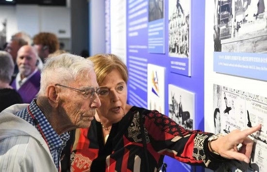 11月1日,在重慶史迪威博物館展廳,嘉蘭惠(右一)和飛虎隊(duì)老兵莫耶在重慶史迪威博物館參觀。新華社記者 王全超 攝