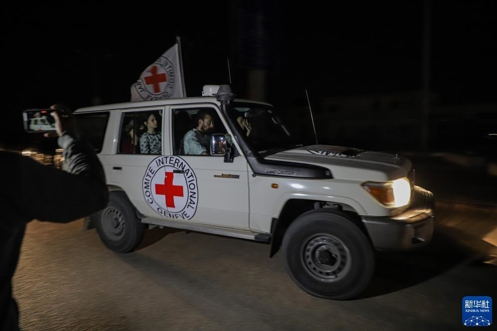 11月25日,紅十字國(guó)際委員會(huì)工作人員將被釋放人員送往加沙地帶南部拉法口岸。新華社發(fā)(里澤克·阿卜杜勒賈瓦德攝)